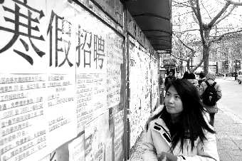 临近寒假,各种招聘广告也开始“火”起来。5日,在潍坊学院广告栏内,铺满了密密麻麻的招聘广告。据了解,今年的假期招聘还是以短期促销和家教为主,但薪水却比去年上涨了不少。该学院的大三学生小洋告诉记者,去年寒假她做过一个月的促销员,月工资是1000元,然而同样的工作,今年的薪水却已经涨到了1200-1500元。 本报记者 吴凡 摄影报道