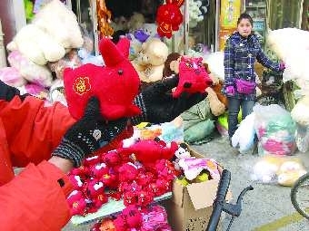4日下午,德州市城隍庙市场—处毛绒玩具店前,成堆的小老虎毛绒玩具被摆放在—块降价销售。“小老虎5元—只,而之前卖到10元。”店主介绍。据了解,同样大小的兔子毛绒玩具刚刚上市的价格在10元以上。 本报记者 杨金涛 摄影报道