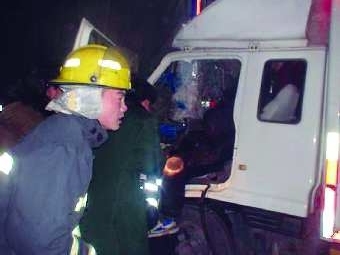 4日清晨,在济聊高速发生了—起货车与卡车追尾事故,两人被困驾驶室。在齐河消防官兵的救助下,两名被困者被救出。