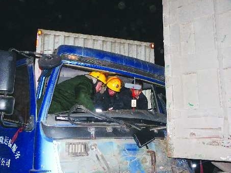 本报1月5日讯(见习记者 李梦娇 通讯员 尹岩 姚浩) 1月5日0时29分,禹城市新汽车站往北一公里处,三辆大货车连环相撞,一辆大货车的驾驶员被困在驾驶室内。消防官兵接到报警后迅速赶赴现场,在寒风中奋战一个多小时,最终助大货车司机脱困。