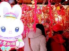 春节临近,大街上的年味越来越浓,市民们纷纷开始购置年货。记者5日走访三站市场发现,多家店铺现已开始出售福字贴画,仿真鞭炮、吉祥兔、富贵福等饰物也卖得非常红火。而因为明年是兔年,所以这段时间吉祥兔的贴画卖得特别好。(实习生 叶志勤 陈琳琳)