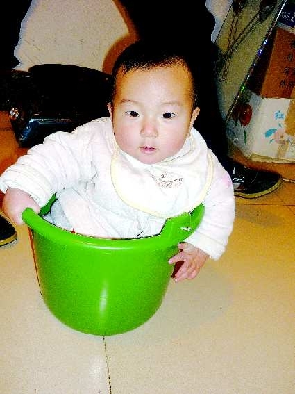 作品描述:5个月大的小子不愿躺,又站不住,放到桶里满足他想四处看的心愿。