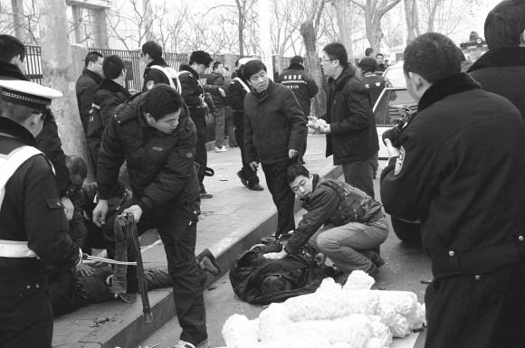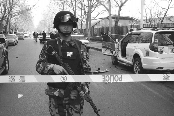4日13时20分,记者赶到文化路中段,整个路段已经被警戒线封锁。警戒线之内,十多名武警持枪戒严,还有不少民警在现场拍照取证。