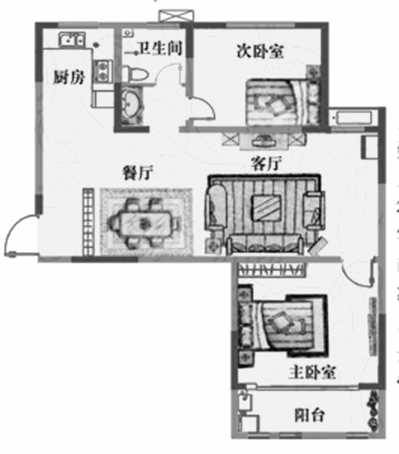 点评:乍一看这是两室两厅,与我们这期的主题不太贴切,但是项目销售人员却告诉记者,这个户型其实可以做到两室、三室随心变,所以该户型起名叫做自由上居。客厅与餐厅一体化设计,加大了自由生活使用空间。该户型南向主卧与落地阳台相连,次卧室大开间短进深,布局方正。卫生间干湿分离,全明设计。
