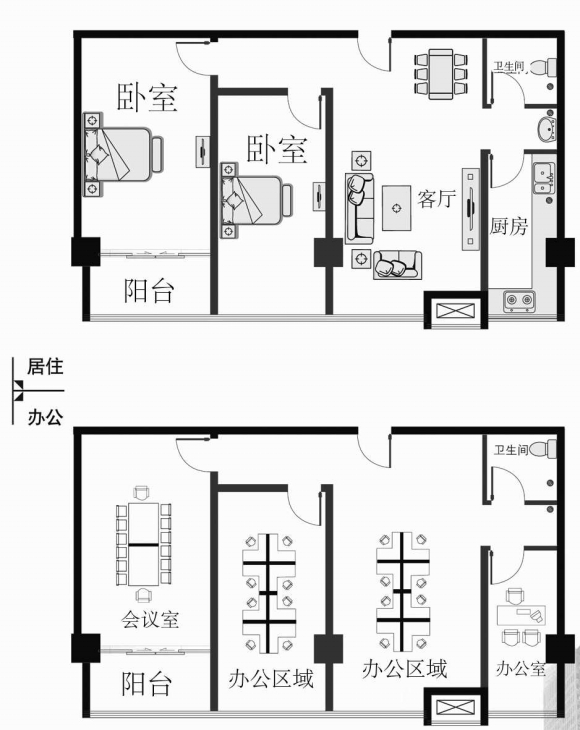 点评:独立办公室与生活空间自然隔离,工作休闲两不误,办公室空间转角景观飘窗设计,空气清新入室,阳光和煦流连。轩敞的卧室与超大景观阳台融汇光通,采光观景,十分浪漫。