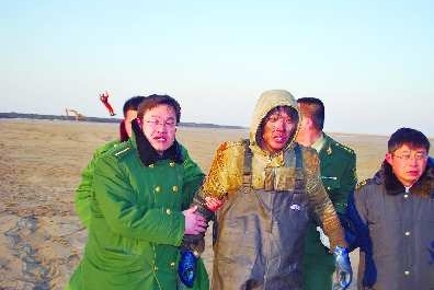 本报潍坊1月6日讯(记者 张焜) 4名工人在潍坊东部海域被海冰困住,于5日晚上7点多求救。6日上午10点多,海上救援直升机将他们全部安全救出。 6日上午9点,记者坐车沿着潍坊滨海海慧路向北行驶,途中车被边防民警拦下。负责维护秩序的央子边防派出所所长陈建平告诉记者,前方道路已经被定为救援飞机的临时停机点。 陈建平说,早上8点左右,有2名被困人员已被直升机救出,送往医院。上午10点半左右,一架海上救援直升机从地面救援人员的头顶飞过,降落在路上。随后,两名身着军绿色大衣的工人被扶下飞机。地面救援人员把两人转移到救护车上。