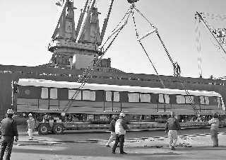 出口新加坡的地铁车辆在青岛港装船启运 通讯员 窦新 摄