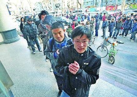 昨日,在山大南路山大附近一售票点前,寒风中学生排起近百米的长队。据排队的同学讲,春运车票一票难求,虽然现在是最紧张的备考时间,但花时间早早买到返家车票还是值得的。 本报记者 张中 摄