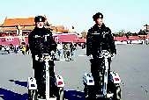 北京市公安局天安门地区分局的民警,在广场巡逻。他们驾驶的自平衡两轮车———“智能单警”首次亮相,引来大家好奇的目光。体积小,操作方便,这款两轮车用在街道、广场等人群密集、空间狭窄的区域,辅助警务人员巡逻非常适用。电瓶车和健身器合二为一的代步工具,不仅是单车还是移动警务平台。