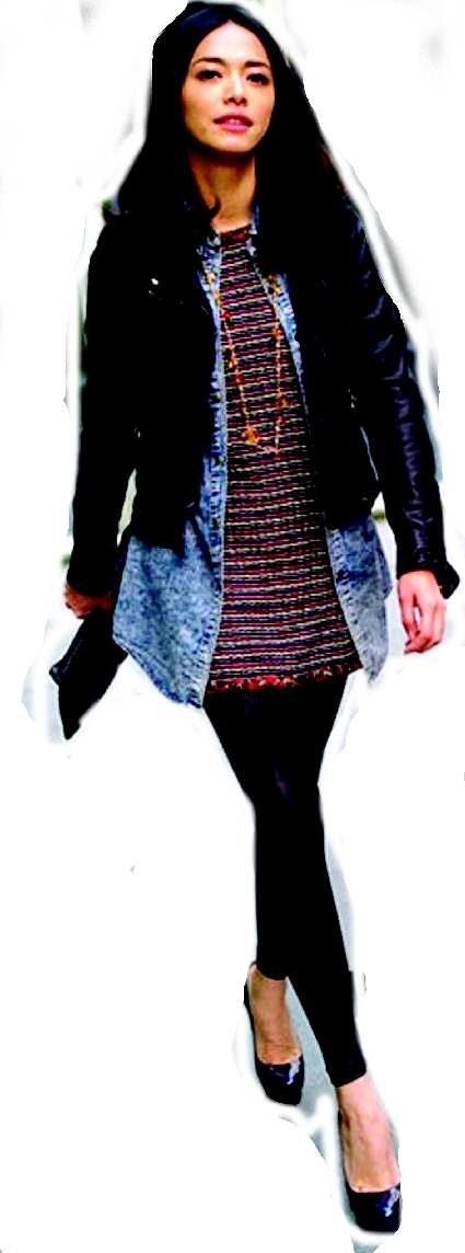 4、姚晨搭配灵感:参考今年秋冬的T台流行时发现,牛仔衬衫真是一股不可或缺的潮流。另外黑色机车夹克也是衣橱里的百搭单品。斜纹软呢裙装,搭配上紧身裤和高跟鞋,女人味十足的摇滚感觉你也能尝试!