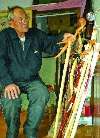 3日下午,75岁的李光海正在家中打磨拐杖。他的旁边,几十根形态各异的拐杖靠在墙边,有的已经涂上油漆,雕刻上图案。 李光海告诉记者,他制作拐杖已经有十多年的历史,2010年搬到环翠区前进社区后,把积攒的400多根拐杖送到了居委会,希望赠送给有需要的人。 熟悉李光海的人都知道,他是个“树根迷”。从1997年开始,李光海迷上了做拐杖。上山刨酸枣枯木,徒步跟着修路人员捡拾树根,把它们捡回来细致打磨,制作出一根根精美而结实的拐杖。 李光海的老伴告诉记者,要制作好一根拐杖,李光海基本上都要忙活一个星期。“刨、削、磨、上漆、雕刻,每一道工序都马虎不得。” 今年,李光海搬到了前进社区。不能再像以前一样经常上山了,李光海把几年来攒下来的拐杖精雕细刻,并刷上油漆。记者发现,他制作的每一根拐杖都像是根雕艺术品,造型别致。李光海说,挖到树根后,他首先要琢磨琢磨能否根据其形状做出造型,因此每一根拐杖都可谓花了一番心思。 看着这些倾注了自己无数心血的拐杖,李光海萌生了捐赠的想法。李光海找到了居委会,咨询是否能捐给敬老院。在他看来,送到养老院,会帮助到更多需要的人。 在前进居委会的联系下,李光海将自制的100余根拐杖送到了桥头镇敬老院和张村镇敬老院的老人们手中。收到了制作精良的拐杖,老人们都非常开心。 “看着步履蹒跚的老人能在这些拐杖的帮助下把夕阳路走得更稳,我就心满意足了。”李光海笑着对记者说。