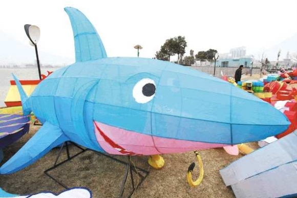6日的水城,阳光温暖,没有了前两天的寒气逼人,水城广场上多了一些游玩的市民。在广场南部,水城集团请来的工匠师傅们,正在紧张忙碌地扎花灯。和去年一样,兔年花灯也是由江苏镇江的花灯艺人李怀金带队制作,十名花灯师傅正在焊接框架、活动轨道、包扎花灯,而在东昌湖湖边的草坪上则摆放着扎好的狮子、鲸鱼、兔子、袋鼠等花灯。