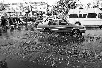 6日下午,在香港西路上,一处地下供水管道断裂,水从路中央直往外冒。供水抢修的工作人员紧急赶到现场处理,并设置了警示牌。为了防止地面结冰,工作人员对路面做了应急处理。造成此处管道断裂的原因正在调查中。 本报记者 杨宁 摄