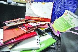 年底,不少市民的案头堆满各色企业台历。 本报记者 王媛 摄