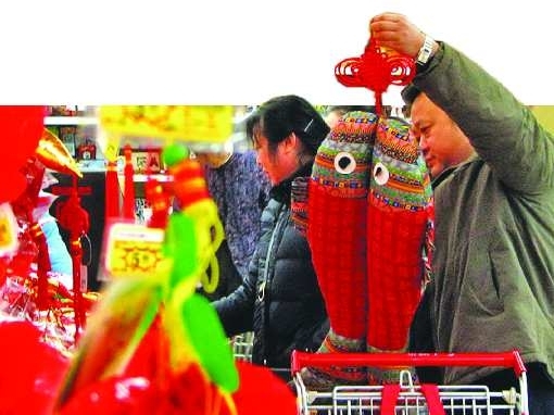 省城一家大超市,市民在年货专柜前挑选着喜庆的年货。 本报记者 周青先 摄