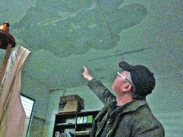 由于过度浸泡,顶棚石膏都掉了下来。 见习记者 尹明亮 摄