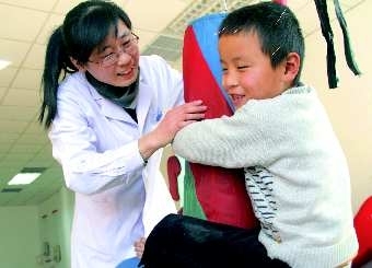 给患儿做运动治疗、作业治疗、感觉统合治疗、语言治疗、推拿和针灸治疗、理疗……每一天,康复治疗师们都重复着这些工作,对于一些肢体运动不便的患儿,还要进行局部注射放松肌肉。同样的动作一天要重复上百遍,单调、枯燥。