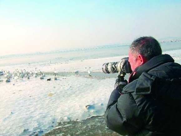 8日上午,来自中国画报协会、人民画报、东方航空杂志社等多家媒体的200多位摄影师聚集荣成天鹅湖,对来此越冬的大天鹅进行拍摄。当天,“好运荣成”大天鹅全国摄影大赛启动仪式及“中国大天鹅之乡”山东荣成授牌仪式在荣成天鹅湖畔举行。8日至10日,摄影师们进行为期三天的集中拍摄,部分作品将被收入大天鹅全国摄影大赛征稿中。 本报记者 冯琳 摄影报道