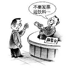 记者又询问了4位在饭店就餐的市民,他们均表示,如果发票不能用来报销,宁愿选择饮料、布娃娃之类的小礼品。“个体经营的饭店一般喜欢用这种礼品换发票的伎俩,从而达到自己逃税、偷税的目的,大型、正规的酒店一般不会出现这种情况。而出入小饭店的市民,一般在商家设定的这种小‘恩惠’中会选择妥协。”市民张先生说。