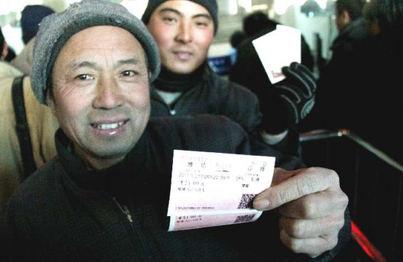 9日下午4点左右,在潍坊务工的孙芳柱和工友买到了返乡票。记者了解到,由于春运学生票提前20天购买,从2号起开始的学生购票高峰,到现在已经基本结束,所以现在市民购票未现紧张情况。 本报记者 吴凡 摄