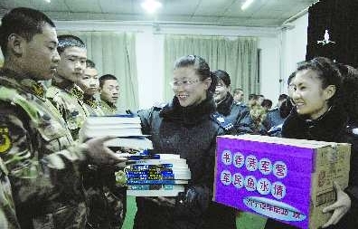7日晚,济宁汽车总站将价值近万元的图书送到武警济宁支队教导队,让春节的警营飘起书香。据了解,为了让新兵过好离开家的第一个春节,车站在为新兵们送去精神食粮的同时,还和武警战士们表演了一台精彩的文艺演出,军民之间实现进一步的沟通和交流,鱼水之情更加深厚。 本报记者 黄广华 通讯员 李道吉 摄影报道