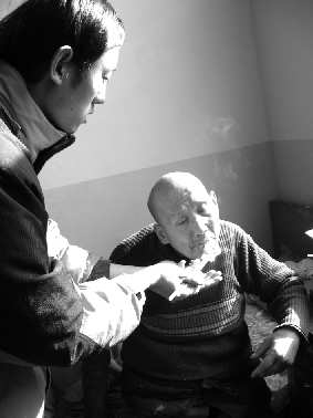 中午12时30分,徐先生下了一锅饺子后,泡上一茶缸黑芝麻糊端到54岁的高秀琴面前。记者了解到,高秀琴因脑溢血后遗症生活不能自理,几乎全靠徐先生夫妇照料。徐先生介绍,高秀琴虽生活不能自理但意识很清晰,“老人都是自己找乐子,我们担心她缺少沟通和交流,产生郁闷情绪,于是我有时间就和她聊天,别人听不清她说话,但我完全可以。”徐先生端着茶缸一点点喂高秀琴,“喂半个小时是很正常的。她家人把她送来,我们就应该把她照顾好”。 记者想给高秀琴喂饭,去试图体会他们的细心和耐心。徐先生一再告诉记者,喂饭要慢慢地,千万别呛着她。记者忽然觉得手中的茶缸很沉重,记者小心翼翼地舀起一汤匙芝麻糊,送到她嘴边时,她的嘴忽然紧闭。徐先生就告诉她,记者是来看望你的,让她把嘴张开,慢慢地高秀琴的脸重新现出微笑。一勺,一勺……在高秀琴嘴巴的一张一合中,记者的手臂虽然有点酸,但切身体会出护工的不易,同时心里也一阵阵心酸,护工几乎是他们唯一倾诉的对象,老人以及一些病人也需要我们社会各界的关爱。“他们的儿女一般一周来看他们一次。”尹女士介绍。