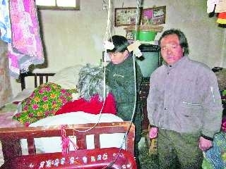 季志刚正在和妻子一起照顾卧床老人。 见习记者 尹明亮 摄