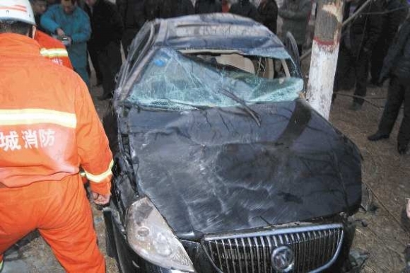 轿车超速撞上大树