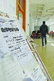 1月9日,在日照市曲阜师范大学图书馆的宣传栏上贴满了“考研专车”的广告。 见习记者 王娇 摄