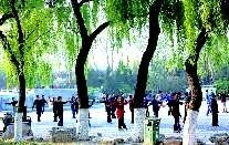 通往小山的路边一棵棵松树笔直的挺立着,好像在欢迎我们的到来。地上的小草也没有了夏天时的风采,变得黄黄的,在风中摇摆。早晨的空气也很清新,吸一口虽然凉凉的,但是很畅快、舒心。
