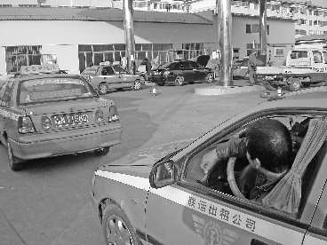 10日下午,在天衢路的一家加气站前,40余辆等待加气的出租车排起了长队。据了解,因近期民用气高峰时段管网压力偏低,导致部分压缩机无法运行,为保证正常加气,气站关闭了4台加气机中的两台。 本报见习记者 曹宏源 本报记者 张金东 摄