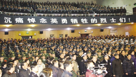 10日,泰安市召开“1·04”持枪杀人案牺牲烈士追悼大会,到处都有市民在鞠躬、默哀。