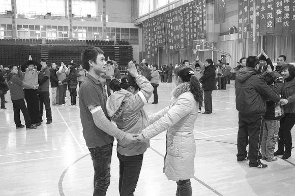 1月8日,一场由LP48青年志愿团发起的“爱心手拉手,成长心连心”主题公益活动在山东农业大学体育馆举行,来自岱岳区道朗一中、道朗二中的60名学生在家长、老师的陪同下参加了本次活动。本次活动通过快速拼图、二人分享等多种游戏方式,努力架起孩子、家长、老师三者之间沟通的桥梁。图为义工在与学生、家长进行互动。本报记者 侯艳艳 摄