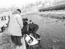 13日8时20分,在滕州十字河闸管所北面,一群众落入冰水中,滕州市公安局柴胡店派出所民警,借助110救助工具及附近村民提供的鱼衩和三轮车绕到河对岸,趟水过河,将落水者救起送往医院抢救。