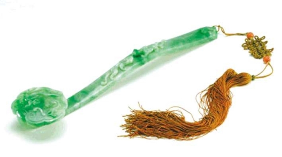 清,长虎配厘米,最宽绿等厘米。翠质青绿,局部色较深。如意柄微弯成弓状,垂云式如意头,柄中部和头部均浮雕双螭。