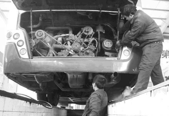 1月13日,聊城市交运集团对1139辆春运客车进行检测保养,确保车辆安全上路。图为交运集团凤凰客运公司工作人员对公司所属车辆进行全面检查。