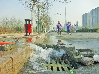 13日,记者在东风东路一建筑施工现场外看到,一条长长的橘红色管道从工地内引出,管道口搭在路边排水口附近,清水哗哗地从管道内涌出直接流入排水口。附近居民说,该管道向外排水已经有一阵子了,“水白白流走,都浪费了!”
