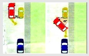2.车子以45度角慢退,待本车车头与前车车位成一直线时,迅速将方向盘向反方向打足,慢退后车就基本泊好了。斜线停车位泊车: