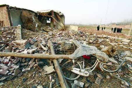 本报聊城1月14日讯(记者 王尚磊) 14日上午,聊城市冠县辛集乡冯杜庄村,一私自存放烟花爆竹点发生爆炸,致使一人死亡一人受伤。 14日下午3时左右,记者在冠县辛集乡冯杜庄村西头看到,铲车和挖掘机正在清理爆炸产生的废墟,碎砖瓦下面压着一些湿透的爆竹碎屑,砖瓦中有一床被子,一辆自行车严重变形,断裂的门窗和水泥横梁散落在地上。废墟上方的电缆也被炸断,落在地面上。 “爆竹碎屑和砖块被炸出100多米远。”围观村民介绍,这处废墟上本来有五间平房,14日上午9点多突发爆炸,五间平房倒塌。 一名围观村民说,爆炸点距离村子较远,村民不经常来,他此前不知道这里面存放着爆竹。不过,他中午在砖缝中看到了几个没有爆炸的二踢脚。 聊城市人民医院烧伤科病房一位医生介绍,当天上午10点多,他们接到通知称,爆炸现场一名伤者正在送往医院,但由于这名伤者伤情严重,在途中抢救无效死亡。