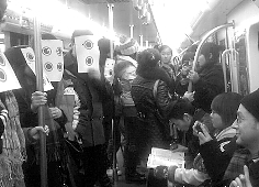 12日14时许列车经过成都地铁天府广场站时,9位乘客突然掏出类似《让子弹飞》中的麻将面具,变身成了“麻匪”,齐声说:“祝大家新年多多和牌,恭喜发财!”