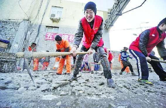 昨日,泉城最低气温达到-11℃,尽管如此,仍然没有阻止“百姓城管”上街义务破冰的步伐。他们的义举不但为市民出行安全带来保障,而且得到了广大市民的敬佩。 本报记者 王媛 摄