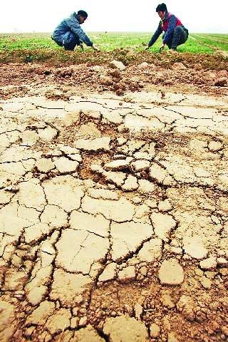 我省济宁、济南、临沂等地区持续无有效降水,旱情还在持续。图为14日,曲阜市王庄镇前孟村村民孔令军夫妇在麦田里浇水,他们身前的土地已经干裂。 本报记者 张晓科 摄