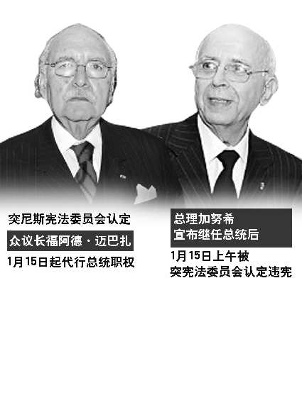 据新华社突尼斯1月15日电 根据突尼斯宪法有关规定,突尼斯众议长福阿德·迈巴扎从15日起代行总统职权,并在参众两院议员的监督下正式宣誓就职,他还同时委托总理加努希尽快就未来民族团结政府的组成人员提出建议名单。 迈巴扎在宣誓仪式结束后向全国民众发表讲话,呼吁所有突尼斯公民、所有政治党团、所有社会组织为了国家的最高利益,在这一突尼斯历史的敏感时期,支持警察和军队在全国各地恢复安全、稳定和秩序,因为这是突尼斯“迈向新的历史阶段,实现人民愿望的必要条件”。 面对国内此起彼伏的抗议浪潮,突尼斯总统本·阿里于14日晚被迫离开突尼斯。总理加努希随即发表声明,宣布根据宪法接管总统职权并举行了就职宣誓。 但15日上午突尼斯宪法委员会召开紧急会议,认为加努希总理继任共和国总统违反宪法,同时根据宪法第57款规定,认定突尼斯共和国的总统职位“处于永久性空缺状态”,应由众议长代行总统职权,并最迟在60天之内举行大选。迈巴扎表示,他将努力确保大选如期举行,选出新一届任期5年的共和国总统。 此外,鉴于前总统本·阿里14日已经宣布解散了现任政府,因此目前的政府实际已不存在。为此,迈巴扎代总统委托加努希总理负责组建由各党派组成的民族团结政府,尽快就未来政府的组成人选提出建议名单。