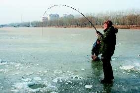 连日来,冰封的河道和湖面吸引了许多市民凿冰捕鱼,也有不少学生溜冰玩耍。看似充满乐趣,实则很危险。