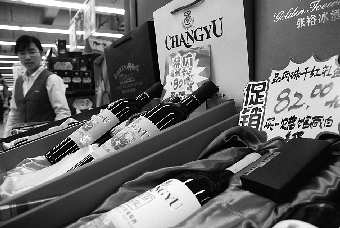 13日上午,东城银座摆出了两排葡萄酒专柜,其中长城葡萄酒、詹姆士2008及华东庄园还打出了“买一赠一”的牌子,促销员朱女士告诉记者,年底买葡萄酒的市民越来越多,厂家为了多销售,做出了“买一赠一”或“买二赠一”的活动。她说:“价格一瓶在一百元左右的葡萄酒销量较好。”