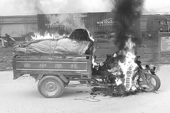1月12日下午4点半左右,一辆摩托三轮车在省庄镇十里河附近一加油站旁自燃,情况非常紧急。泰安消防二中队消防官兵接到报警后,及时赶到现场将明火扑灭,防止车体爆炸。