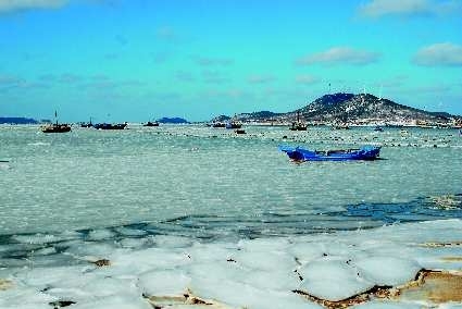 受冷空气影响,连日来渤海和黄海北部海冰冰情迅速发展,长岛庙岛塘海域也出现海冰,目前已有近百艘渔船冰封海上。据介绍,今年罕见的寒潮让这里出现了最低零下十七八摄氏度的低温,而且大雪、暴雪不断,使得冰冻厚度都在5厘米以上,但客运航道和养殖海域未见浮冰,不影响船只的航行。本报记者赵金阳通讯员孙春明 摄