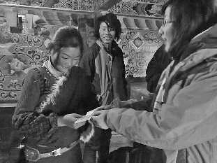 本报四川温拖1月16日讯 1月11日至16日,温拖乡7所村落、仁古村小学以及党批禅印寺小学的贫困儿童接到威海爱心读者捐赠的善款。但善款只能缓解一时之急,他们还需要长期的援助。为顺利完成学业,10名家境较贫困的儿童,希望能和您结对子,一对一接受长期捐助,每人每月生活费约需150元。 14日,在温拖乡政府和两所小学老师的介绍下,记者拿到一份家境较为贫困的孩子名单。10名孩子中2名是孤儿,8名来自单亲家庭,家里的经济来源比较单一,基本上都靠种青稞和挖虫草为生。 张雄是个10岁的小姑娘,在温拖乡中心小学读一年级。虽然已经放假,但是好学的她还是跑到4公里远的仁布村补课。“张雄来自单亲家庭,家里还有妈妈和5岁的妹妹,一家三口靠妈妈打零工糊口。”温拖乡副乡长白玛介绍说。