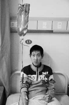 5日下午,当记者在日照市东港区医院保健楼二楼的病房内见到张祥的时候,他正躺在病床上输液,床头一朵宝蓝色的玫瑰花,明艳的颜色给惨白的病房带来特殊的生气。谈及病情,张祥的母亲孔凡美说,发烧引起肺部病变,张祥的肺部之前做过两次切除,2010年初再次复发入院,经过北京协和医院专家确诊,检查CT显示“根霉菌感染复发”,这种病在国内还是首发病例。