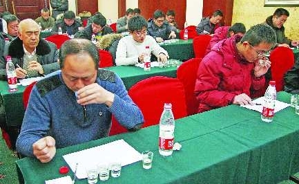 16日,30名业余品酒人士齐聚贵都大酒店,参加本报与山东省轻工业协会举办的首届山东省百姓品酒大赛德州赛区比赛。选手们一看二闻三尝,细细品味着各种香型、浓度的白酒。现场决出了前10名选手,他们将代表德州市赴济南参加决赛。 本报记者 马志勇 摄
